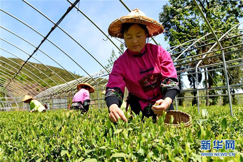 河北省臨城縣東籬茶園(5月3日攝)。近日,河北省臨城縣西部山區的東籬茶園40萬(wàn)株“邢香桐花秀芽”茶進(jìn)入采摘期,加工包裝后將銷(xiāo)往北京、天津、山西等地。2012年,邢臺市高級茶藝師楊素珍將龍井茶樹(shù)從南方移植到臨城縣,如今已發(fā)展到50多畝,帶動(dòng)周邊近百農戶(hù)脫貧致富。新華社記者楊世堯攝