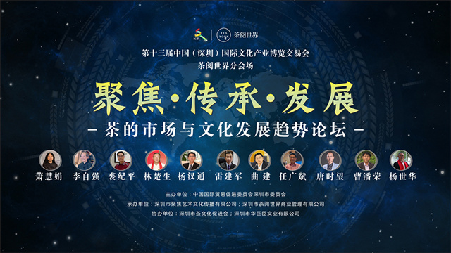 5月12日下午,第十三屆中國(深圳)國際文化產(chǎn)業(yè)博覽交易會(huì )高峰論壇——“聚焦•傳承•發(fā)展 茶的市場(chǎng)與文化發(fā)展趨勢論壇”將在茶閱世界分會(huì )場(chǎng)隆重舉行。歡迎大家報名參加此次論壇活動(dòng)!