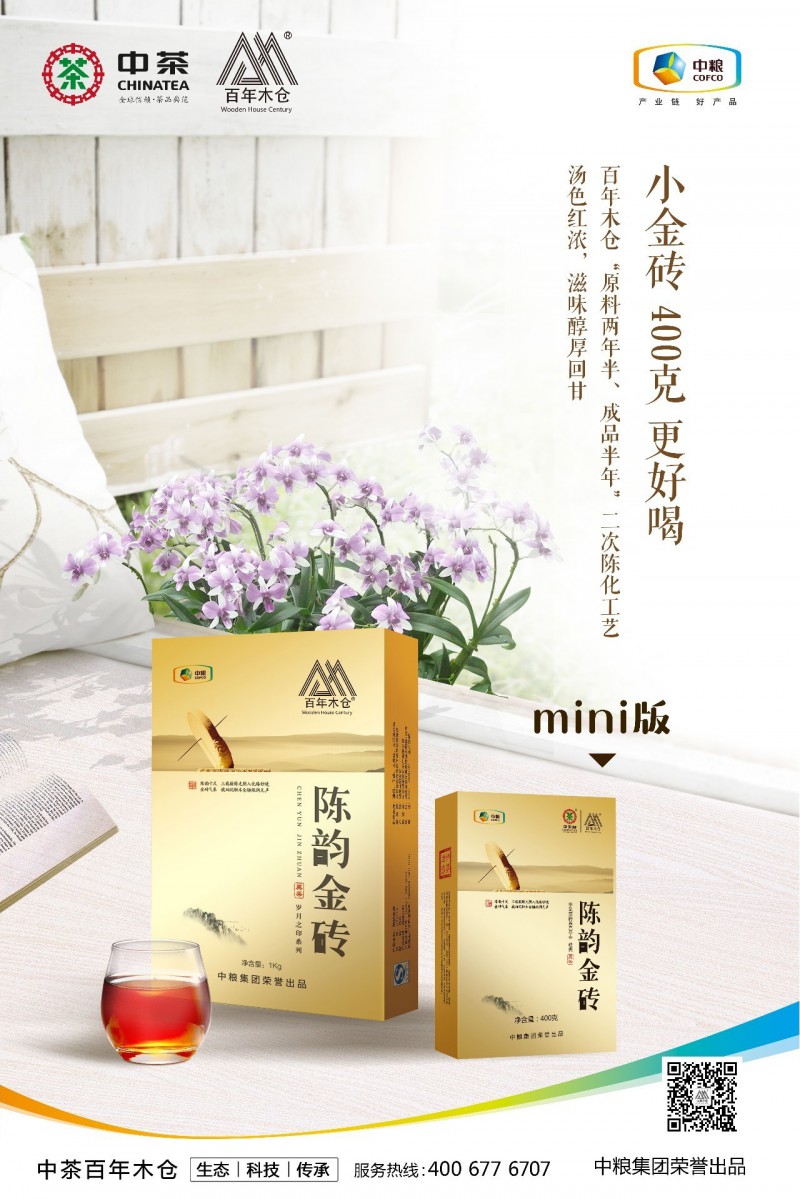 此次中茶“百年木倉”特別推出陳韻金磚手筑茯磚茶400克便攜mini版,又稱(chēng)“小金磚”,與陳韻金磚1kg采用同樣的原料和工藝,更貼心的包裝和設計,方便攜帶,品飲時(shí)也更容易撬取和沖泡。