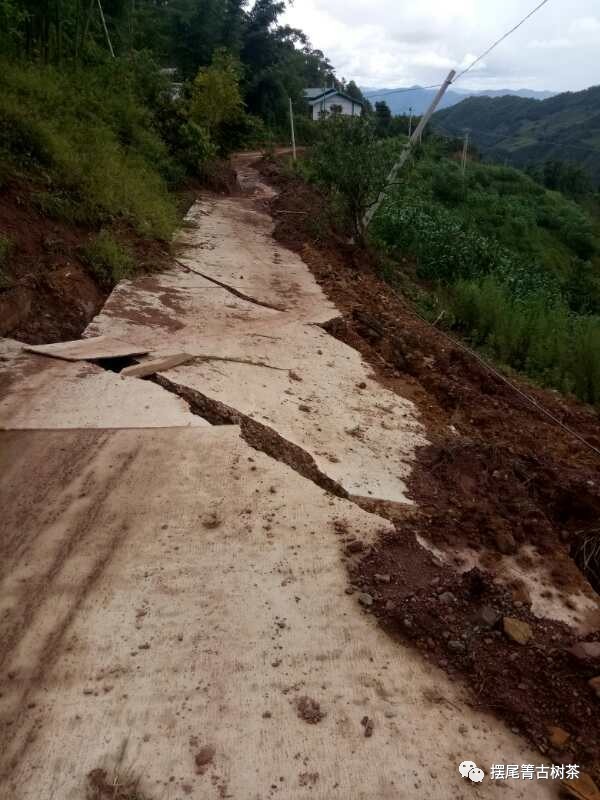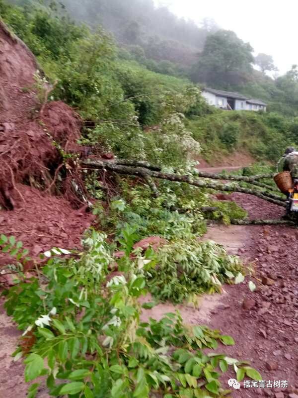 通往擺尾箐古茶園的路途左手峭壁,右手懸崖,可謂一條通往百年古茶樹(shù)的朝圣之路;加之今年雨季長(cháng)、雨量大,剛修好的路又被山洪沖垮。擺尾箐古樹(shù)茶在艱險的環(huán)境下,不忘初心,用生命保護古茶樹(shù),堅持做真正古樹(shù)茶。
