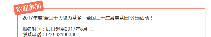 綜上所述,我想已經(jīng)不需要更多的理由促使你報名了,本次評選截止時(shí)間為2017年8月,有興趣的茶鄉、茶園可點(diǎn)報名參評~