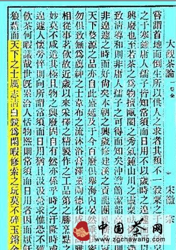 嗚呼!至治之世,豈惟人得以盡其材,而草木之靈者,亦得以盡其用矣。偶因暇日,研究精微,所得之妙,后人有不自知為利害者,敘本末,列于二十篇,號曰《茶論》。