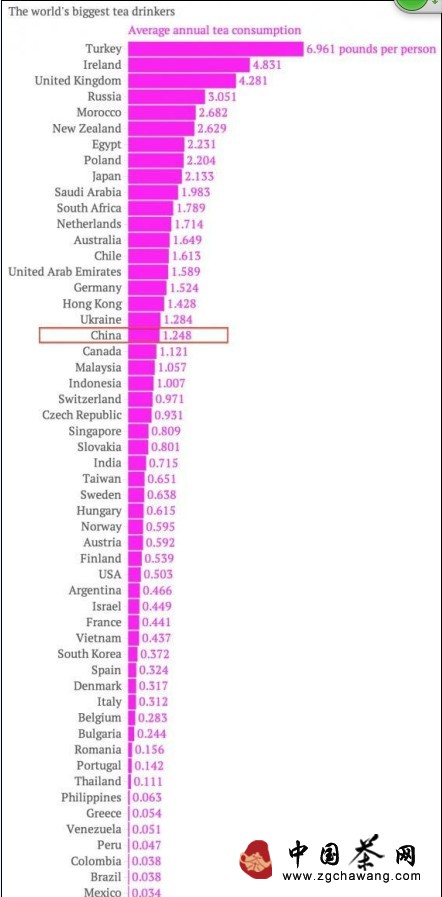 (世界每年人均飲茶量排名及磅數)